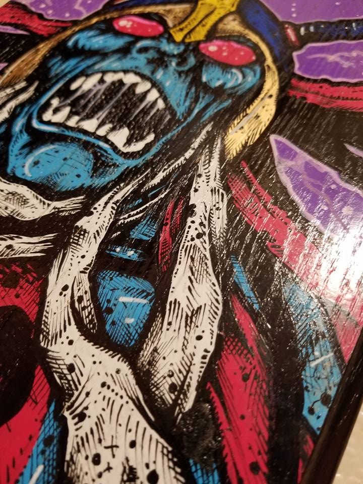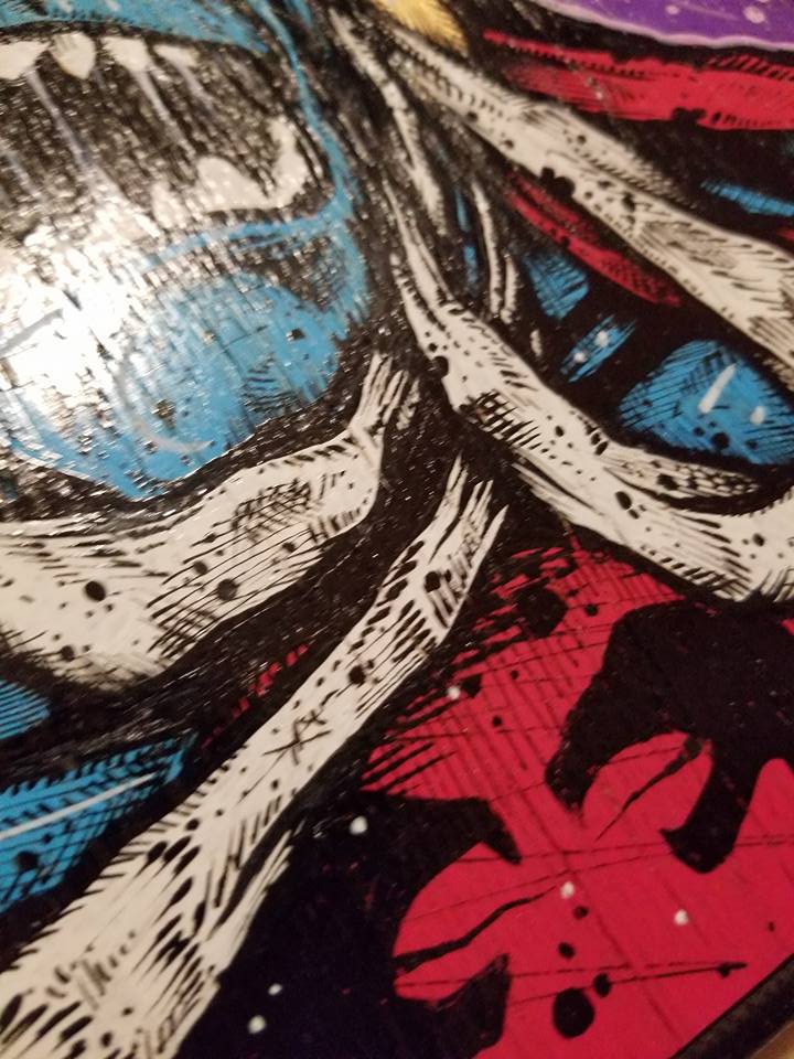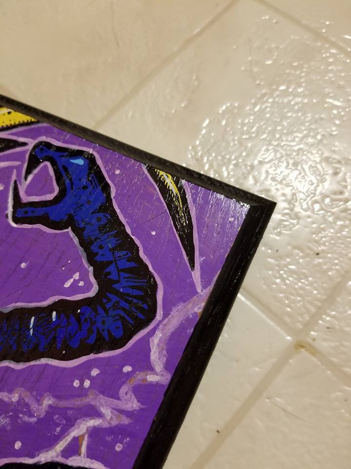 9 x 11.5 acrylic on cupboard door (aka shellac covered beveled edge wood) under a gloss coat.